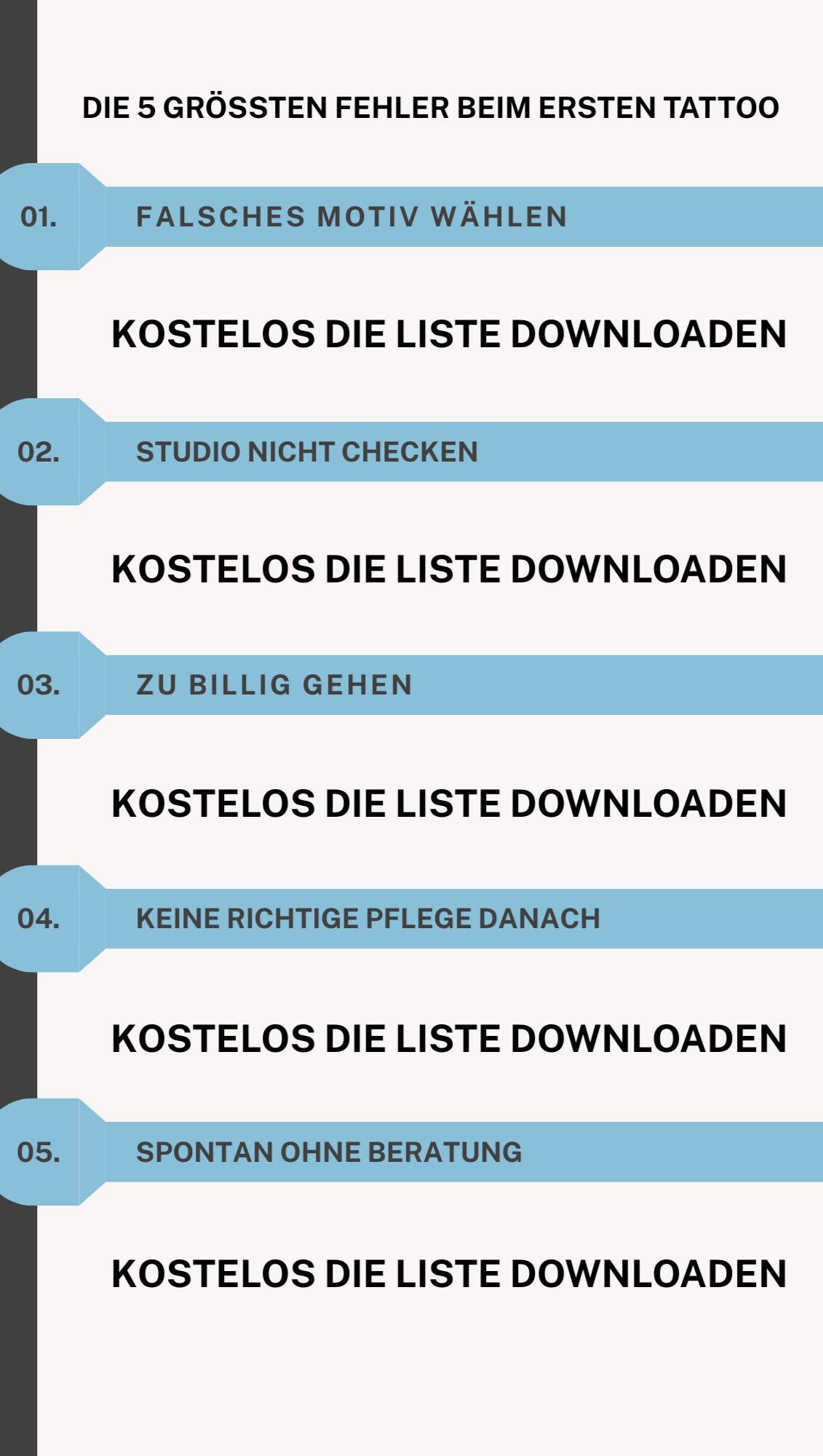✔️ Ehrlich, direkt & aus der PraxisDu sparst dir schmerzhafte FehlentscheidungenErhalte sofort Klarheit & Sicherheit vor deinem ersten Tattoo